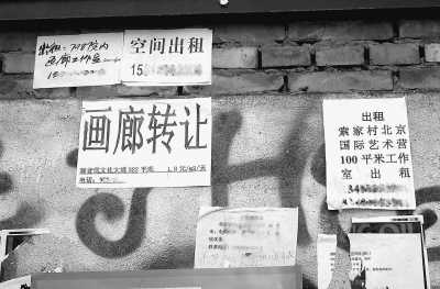 “798”艺术区内公告栏上张贴的出租转让信息。季 露摄