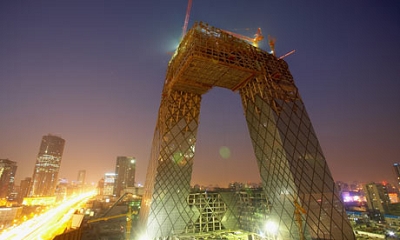 这一壮观的建筑,以巨大的、超现实的中文书法字符作为灵感来源,在2008年奥运期间完成了主体结构。但现在,它里面还没有任何东西。在2009年年末,它将成为央视的总部,并且,将向公众开放。这幢大楼的动力学设计由荷兰建筑大师雷姆·库哈斯和德国建筑师Ole Scheeren完成,而Cecil Balmond则担任设计工程师。这个设计不得不说是个奇迹。