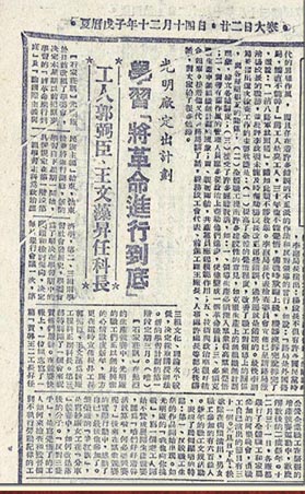 4.1949年1月12日《人民日报》第3版刊登的报道:光明厂定出计划,学习《将革命进行到底》