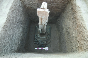 此次考古发掘发现了一处辽金时代塔林,共有塔基25座。塔是供奉或收藏佛舍利、佛像、僧人遗体等的建筑。塔为砖塔,上部已被破坏,在塔基下发现有地宫。经清理发现,地宫内有铜菩萨像、两颗高僧的骨殖(舍利)等。据工作人员介绍,考古现场还发现了残存的经幢。经幢可分为幢座、幢身、幢顶,此次发现的经幢均已倒地。工作人员推断此处应是25位僧尼的埋藏之处。