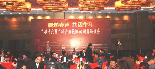 中新网1月12日电 中国产业报协会于2009年1月10日在金茂(北京)威斯汀大饭店成功举办“铁十六局”杯2009年新春联谊会,190多位新闻界和企业界人士参加。据了解,这是历年来,产业报协会所举办的新春联谊会中,规模最大、规格最高的一次。中记协常务副主席兼党组书记翟惠生、人民日报副总编米博华、中宣部新闻局副局长黄传芳等新闻界领导出席此次联谊会,翟惠生同志在会上发表新春贺辞。