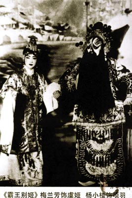 梅兰芳细心准备,穿戴好一身女装,出演虞姬。杨小楼一身戎装,出演霸王项羽。两人粉墨登场,将一出传奇戏目演得真切动人、令人落泪———当演到虞姬自刎时,梅兰芳哽咽唏嘘,演得出神入化,而观戏的太妃、王公女眷们个个泪如雨下,悲戚之情弥漫在整个漱芳斋院庭。王公大臣感到很忧愤,觉得这是不祥之兆,怎么能在大婚的最后一天弄得这样悲戚!