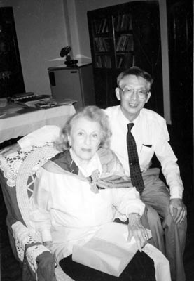 在来访的犹太友人中,最令姚以恩难忘的是肖洛姆-阿莱汉姆的外孙女贝尔•考夫曼。她是一位美国作家,丈夫是美中友好协会主席。当考夫曼知道了姚以恩研究她外祖父的感人事迹后,便让丈夫帮助她详细了解姚以恩的情况。随后,便给姚以恩写了一封信,想到上海与他会面。1994年5月15日,83岁的考夫曼在访华期间,专程来到上海与姚以恩会面,进行了交流。她十分感谢姚以恩对她外祖父的多年的研究,非常敬佩姚以恩的严谨的治学精神。临别,她将一张与外祖父合影的大幅照片签名赠送给了姚以恩留作纪念。