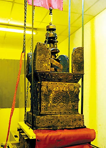 南京古长干寺地宫出土的七宝阿育王塔(见图)去年11月被取出铁函后,有关是否进一步开启阿育王塔的争论日趋激烈。南京佛教界人士认为,如果不能制定完善的保护方案,开启阿育王塔不仅会对宝塔本身造成更大的破坏,而且可能会破坏佛教至宝“佛顶真骨”,由此必将严重伤害全世界佛教信徒的感情。