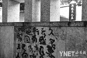 但是,同在一座山上的海淀区级文物马连良墓地平台底座,却还存留着一首绿色小诗:“响遏凌云久,梨园有盛名。三尺山根墓,人间曲易终”。无论文字字体还是颜色,与梅墓地的涂鸦都相一致。