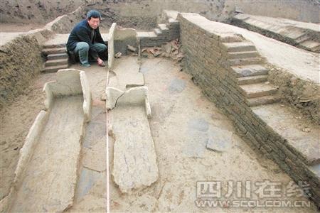 郫县安德镇红专村7号点是一处东汉中晚期的家族墓葬,距今1800年左右。3座墓葬间隔2米多,其中呈凸字型的3号墓葬最为特别,墓墙下动用大型长条石板垫底,可使得墓墙经久不变形,“这在汉代古墓考古上很是少见,无论是尺寸和规格,它在周围墓葬中都是最高的。”考古工作人员推断,3号墓主肯定是家族中辈分最高者。