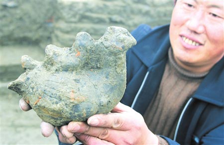 虽然遭盗墓贼“光顾”,这一处家族墓葬中依然出土了陶土烧制的陶棺、陶俑、陶鸡鸭、钱币、摇钱树基座、残片等丰富陪葬物,“很明显是厚葬,而且建筑成本很高,需要雄厚财力。这个家族在当时一定很有身份,而且多半是因财而贵。”工作人员说。