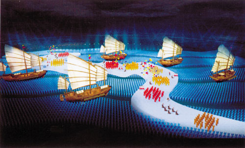 翻开那本厚实的“标书”,不少图片令人感觉“似曾相识”,如梦似幻的海上丝绸之路、扬帆远航的郑和宝船、翩翩飞舞的敦煌飞天……这样的场景从2008年8月8日那天起,镌刻在许多人的记忆中。不过,这可不是北京奥运会开幕式的“拷贝”,翻回“标书”的封面,“2005年7月28日”的字眼让人确信,这份方案比北京奥运会开幕式早了三年多。