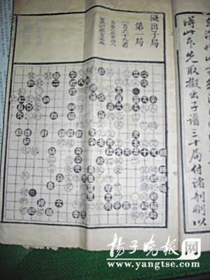 昨天上午,记者在收藏者、镇江市民李耕虎家中,见到了这本线装书。谱纵 27.6 厘米,横 20 厘米,竹纸为皮,注明清康熙庚寅年(1710年)原刻。内页采用宣纸木刻印刷,“公同好其官子谱尚俟(等待)续出云”。据收藏者称,他曾托人去南京、上海等地的图书馆古籍部查阅过,那里所收藏的该棋谱最早版本为清光绪14 年(1888) 版,所以他认为这本古棋谱可能是该版本传世孤本。