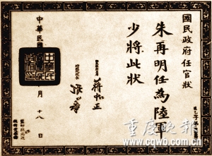 朱再明,巴县陶家乡人(现九龙坡区陶家镇),生于1896年,1951年去世。据巴南区档案局保存的《朱再明自传》载,“再明世为农业,民国二年十六岁时,鉴于北洋军阀执政受日本帝国主义支配,政体日非,乃决心从戎报国”。朱16岁当兵,参加过护法战争、北伐战争。1937年抗战爆发后,朱随川军29集团军出川,先后任陆军161师966团上校团长、161师481旅少将旅长、149师少将师长等职,参加了武汉会战、襄河保卫战、随枣会战、枣宜会战、大洪山保卫战等,成为从巴县出川的军衔最高的抗日将领(根据市委统战部渝统〔2005〕159号文规定:抗日将领指1937年7月7日至1945年9月2日期间,任少将以上军衔、参加过抗日战争的军官)。