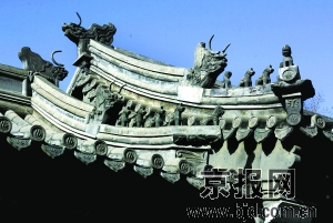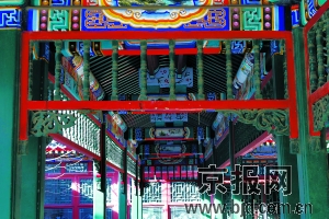 眼前的公主府,描画精致的游廊,朱红色雕漆,彩绘的油漆彩画,端坐在屋脊上排列有序的吻兽,铃铛排山,木构架绘制墨线小点金旋子彩画,柱间饰以雀替,鼓镜式柱础,砖石台基……典雅而古朴,大气婉质而不过分夸张。因为是冬天,树木叶落,无从知道院内篱落疏疏的景象,须到春华夏荣绿满枝头子满荫的时节,再细细品味春色如许。冬天里的和敬公主府,缺少了郁郁葱葱的景色,仿佛轻轻的叹息,似乎淡淡的遗憾,将这个遗憾留待春天,成为再来的理由,可爱的期许。本版摄影 李刚