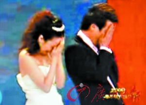 新郎基仔说完“再过3天”之后,就和新娘一起用手捂住脸“嘻嘻”地笑起来,然后才接着说“就是我们大喜的日子”。一句话未了,又捂住脸“嘻嘻”笑(见图①)。
