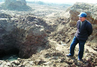 此时,这两处地方已经没有村民挖掘了,但还残留着村民们挖银元时留下的许多土坑,大大小小的坑一个连着一个,有的坑甚至有三四米深,与周围平整的土地形成了鲜明对比。“昨天三个小伙子还在挖,挖出来三只黄色的破碗,银元已经被找完了!”褚大爷说,1月18日前后发现了第一个出银元的地方,年后又发现了第二个地方。