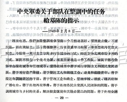 2. 1949年2月8日,中央军委关于部队在整训中的任务给邓(小平)、陈(毅)等的指示