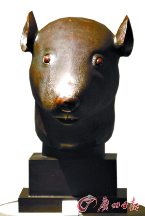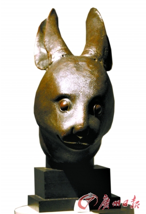 中国圆明园鼠首和兔首铜像被并排摆放在一间展厅的中心位置。与这间展厅内其他展品不同,组织者为鼠首和兔首铜像罩上了玻璃保护罩。众多中外记者围在两尊兽首前,选取最佳位置进行拍摄。