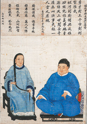 最引人瞩目的是,郑成功盘坐在榻上,其妻坐在椅子上,而这种“夫低妻高”的形式和一般传统中国式的夫妇祖先画像形式极为不合。