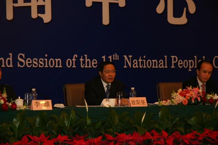 3月12日下午,十一届全国人大二次会议新闻中心举行“文化市场与文化产业发展”专题采访,文化部有关负责人接受中外记者集体采访。