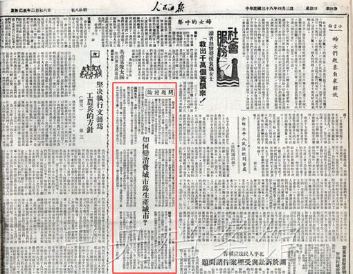 4. 1949年4月3日《人民日报》发表的问题讨论:如何变消费城市为生产城市