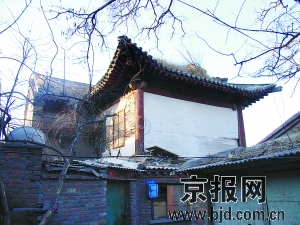 在院内一位住户的煤棚里,存有一块倚墙侧立高大厚重的石碑。碑是清光绪二十一年(1895年)八月所立,碑身已残。从碑身尚存黑黝黝断续的文字中依稀可辨,似乎正诉说着陈年往事。
