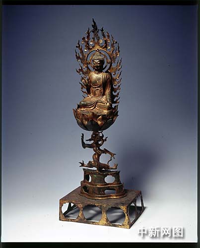 据浙江省博物馆工作人员介绍,安放在雷峰塔天宫内的“五代鎏金纯银阿育王塔”,及其塔内供奉舍利的金瓶,在雷峰塔倒塌时,此塔被严重压扁,2008年底成功修复,因此这次赴台是在台湾的首次亮相。而“唐五代鎏金铜释迦牟尼佛说法像”造型精美,释迦牟尼佛结跏趺坐于盘龙托举的莲座上,身后是镂空火焰纹大背光,静谧的佛、张扬的龙、升腾的烈焰,三者的精妙组合成就了一件艺术佳作。
