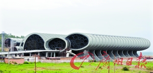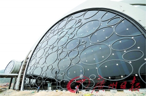昨天,记者在广东海上丝绸之路博物馆看到,气势宏伟的“水晶宫”外墙装上蔚蓝色的玻璃,与大海、蓝天相辉映,一朵朵白云在“水晶宫”上飘浮。在“水晶宫”内,上层的考古走廊及下层的观光走廊已经完工,观光走廊上安装上封闭的透明玻璃,已经灌水8米深。