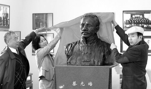 4月20日,蔡元培铜像在北京五四大街原北京大学旧址红楼落成揭幕。该铜像由著名造型艺术家袁熙坤创作。