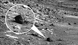 火星爱好者最近在NASA网站上发现了一张“勇气号”火星车传回来的火星照片,这张火星照片顿时红遍了互联网,因为这张清晰的照片上,竟有一个模样古怪、酷似人状“头颅”的石头!