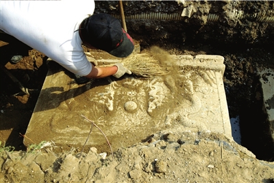 经过村民们连续几天的挖掘,昨天,昌平区旧县村发现的石碑终于露出了“真容”,石碑分为写有碑文的碑身和印有二龙戏珠图案的碑座,碑文显示该石碑为重建寺的碑记。昌平区文委和昌平文物所工作人员说,该碑的价值有待进一步研究。