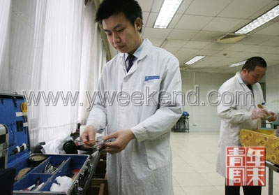 去年殡仪馆招来一个漂亮的小姑娘,第一天培训结束后,老师傅问她有没有男朋友。小姑娘说有。老师傅回头冲着张洋喊,别惦记了,人家有。后来,张洋鼓足勇气追过一阵,但没追上。坐在记者对面,他有点不想提“失败的原因”。其实,这个男孩长得很精神,只是脸上常常流露出一种不符合年轻人的老气和忧郁。“可能我的性格问题吧,我像一60年代的人,不活份,不新潮。”张洋说不清自己是天生如此,还是这份工作造成的——至今,他都不习惯用Ipod,听音乐还用CD机。