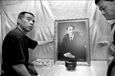 在李老家的卧室里,李文华的老伴苑福云老人在整理着李老生前的一大摞照片。老人一会儿翻看当年姜昆、李文华合作时意气风发的舞台照,一会儿又端起李文华的单人艺术照,不时念叨说:“你看他年轻时候多喜兴,这张穿中山装的就特精神。”苑老告诉记者,灵堂中摆放的那张巨幅彩照,是中国照相馆的师傅给拍的。“2005年,中国照相馆专为明星拍肖像照片的师傅,现在看来,这张照片拍得特别好,谁也看不出他患病来,精神很振作。”