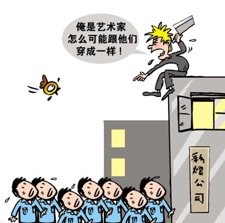 “我是搞艺术的人,喜欢个性张扬,却偏偏把我整得跟他们一模一样!”日前,因不满公司统一制服,且设计提成未给足,广州某公司工业设计经理彭同学第三次报警,且以跳楼绝食相要挟。