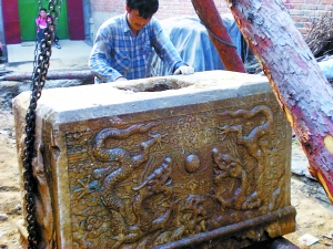 昨天,一块雕刻精美的明朝石碑被从挖掘地昌平区旧县村移送到昌平区博物馆。据当地村民介绍,这块石碑早在1984年就发现了,当时由于挖掘条件所限,石碑被重新深埋于地下。时隔25年,这块石碑又重见天日。