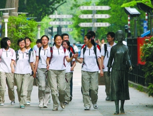 在长江路徘徊,浓浓的文化味挥之不去。从一段极富民国风情的文化墙尽头转弯,小巷子里有扇大门——南京九中的登场,也一如文化墙后的匆匆一瞥,留下的第一印象低调而沉静。