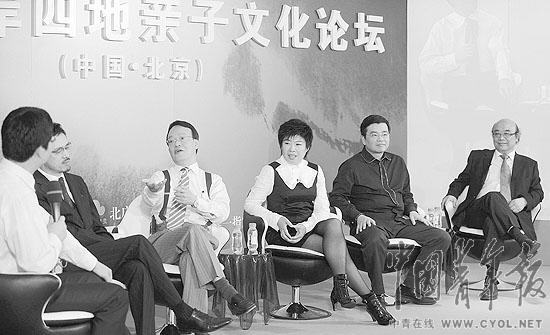 首届两岸四地亲子文化论坛近日在北京举行,台湾著名作家、画家刘墉,内地著名学者于丹,香港著名学者马家辉,澳门著名学者李观鼎,以及贝因美首席育婴专家谢宏共同探讨什么是好的亲子关系。