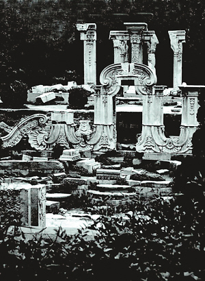 皇家宫殿被抢劫破坏的悲惨场面令埃里松感到难受。他从宫殿走到庭院,观赏这座园林,觉得舒服些。不过他又看见到处都是跑动着的抢劫人群,他们“朝宫殿、宝塔、文源阁跑去”。