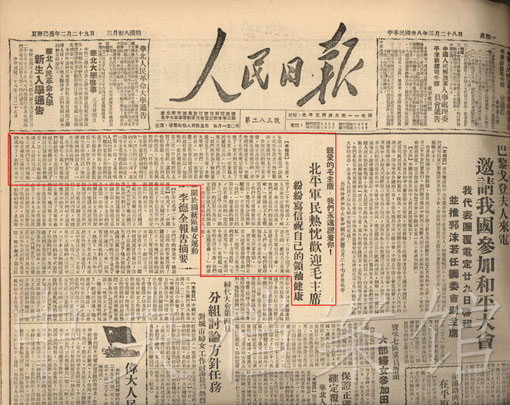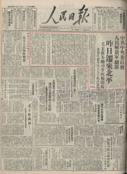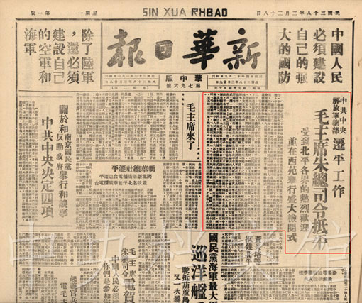 3. 1949年3月26日,《人民日报》关于中共中央抵达北平的报道