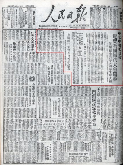 1949年3月24日——4月3日,第一次全国妇女代表大会在北平召开。毛泽东接见了全体代表,并为大会题词:“为增加生产,为争取民主权利而斗争。”中共中央致电祝贺。