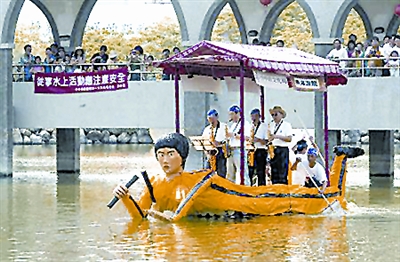 2009台湾环保龙舟创意造型竞赛,23日在台中市丰乐公园开赛。来自台湾地区的73支队伍参加。现场各式各样的创意龙舟争奇斗艳,让市民大开眼界。图为参赛的“李小龙”龙舟。