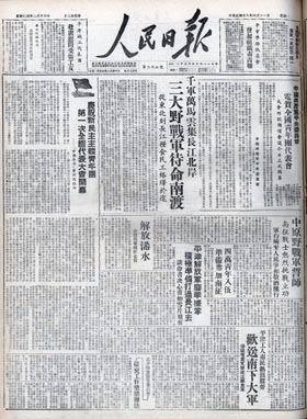 4. 1949年4月11日,《人民日报》关于中共中央电贺全国青年团代会的报道