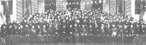 王贵逊带着徒弟赶了过去。相机在第一会议厅的门前架好后,委员们都过来站好,左等右等却不见蒋介石。原来,在二楼的蒋介石俯瞰楼下,见委员、警卫、记者一堆人,秩序很乱,就借口身体不舒服,不参加合影了。于是,“二号人物”汪精卫站在了正中的位置。