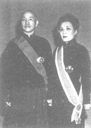1927年12月1日,蒋介石和宋美龄举行婚礼。婚礼分两次进行:先在宋宅会客厅中举行西式婚礼,后在戈登路大华饭店出席中式婚礼。大华饭店的婚礼在乐曲声中宣告完成后,蒋介石和宋美龄来到花园摄影。在一系列由中华照相馆的师傅拍摄的结婚照片上,蒋介石穿尖领衬衫、打浅色领带,配着深色西服,胸口还别着花,宋美龄则身穿浅色旗袍,斜披白纱,头戴一个用花蕾编成的小花冠,手捧一束玫瑰。