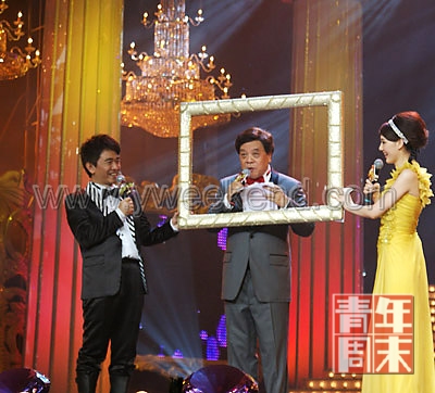 这时,一段比赛舞蹈结束,该三个主持人一起上台了,忽然找不到了吴宗宪,只听年轻的女主持人着急得有些变了腔调:“宪哥!宪哥快上!”赵忠祥手握话筒拉了一下女主持人,声音沉稳地说:“不着急,不着急。”吴宗宪飞快地从暗处跑出,合上手机,三人整了一下装,稳步上台。