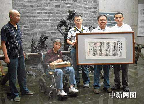 中新网成都7月7日电 (吴志维 杨杰) 今年7月7日是卢沟桥事变72周年纪念日。7日上午,台儿庄滕县保卫战邹绍孟之遗腹子邹汝祥来到建川博物馆,将《滕县保卫战英烈名单》、家书复制件捐赠给该馆珍藏。