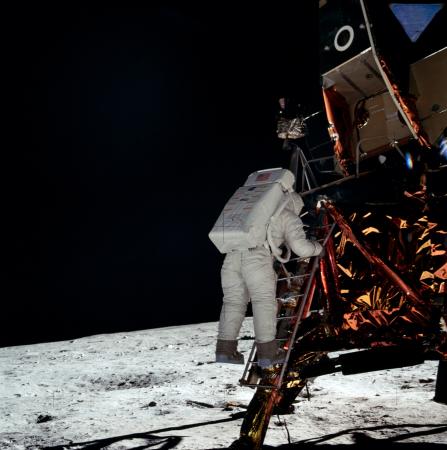 1969年7月16日“阿波罗”11号点火升空,历时5天,于北京时间7月21日4时17分着陆舱在月球静海地区着陆,尼尔?阿姆斯特朗和艾?奥尔德林两位宇航员相继踏上月球表面,开创了人类首次登上地球以外的另一个天体的新纪元,实现了人类历史上的伟大创举。阿姆斯特朗登上月球时的那句话——“这是我个人迈出的一小步,却是人类的一大步”,成为传颂至今的名言。“阿波罗”计划一共实现了6次载人登月,12名美国宇航员登上了月球,开展了系统的月球科学考察、科学实验,安装了探测设施,采集月球土壤和岩石样品381.7千克。