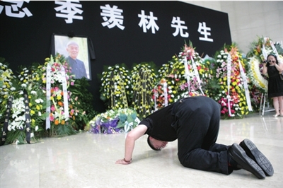 季老的儿子季承表示,这张照片充分体现出了季老朴素、平和和乐观的本色,因此被选中。在灵堂里,2000多枝鲜花进行点缀,花以黄白菊为主,辅以一些百合、剑兰以及非洲菊等品种。