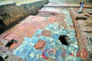 正在发掘的广州南越国宫署遗址工地的南汉地层近日发现了一处大型宫殿遗址,被专家断定为五代南汉国时期的宫殿遗址。