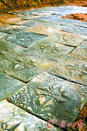 “已发掘的北面庭院铺地砖的做工精美,反映了当时高超的工艺水平和独特的审美情趣。”李灶新说,这些砖每个边长36厘米,表面的菱形方格内饰四只飞舞的蝴蝶,边角饰折枝牡丹。“蝴蝶身美、形美、色美,是美丽吉祥的象征。牡丹,雍容华贵,是富贵的象征。这两种图案装饰的运用,体现出当时人们对美好幸福生活的向往和对荣华富贵的追求。”