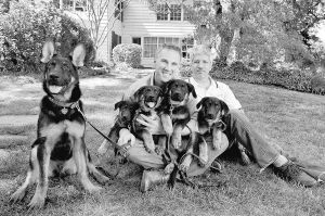 如今,赛明顿拥有了5只和“追捕”有着相同基因的小德国牧羊犬。它们的站姿、坐姿,尤其是坐下的时候“把大腿藏在屁股下面”的样子和“追捕”一模一样。