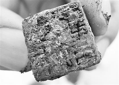下午5点40分左右,“深褐色”的东西被取出,原来是一把铁剑。经历2000多年的腐蚀,铁剑已十分脆弱,从中断成了两截。从该剑的形状上,依然能够看出该剑当时制作的十分讲究,剑柄的造型十分清晰,剑箍为青铜制作,虽然已经生出铜锈,但依然看出质地优良。