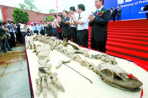 昨日,云南省赠送给中国科技馆的三具恐龙化石正式启运。三具恐龙化石被分装在15个大木箱中,离开沉睡多年的云南禄丰,预计今日中午抵达北京,晚上正式入住与“鸟巢”毗邻的中国科技馆新馆。